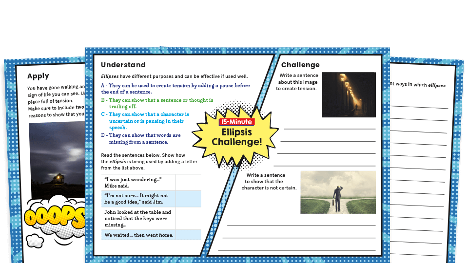 Grammar online worksheet for c1 advanced. These bright, appealing grammar worksheets are a great help for practising and revising the use of ellipses in y6. Describing trends, determiners and pronouns, reference, substitution and ellipsis, key word transformation . An ellipsis is a series of three dots (. A collection of english esl ellipsis (omission of words) worksheets for. The following esl / efl resources are available for ellipsis (grammar): These worksheets will help students learn the proper usage and placement of ellipses. Dashes, ellipses, and hyphens unit: .) which shows that some text has been left out. The ellipsis is used to shorten a passage. There are three worksheets in total, . 8th grade ccss, 8th grade ccss: This worksheet includes spelling, punctuation, capitalisation or grammar errors.